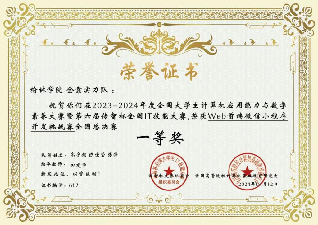 近日,由全国高等院校计算机基础教育研究会主办的第六届“传智杯”全国老员工IT技能大赛院——WEB前端微信小程序开发挑战赛成绩揭晓,由韦德体育高宇翔、陈佳莹和张潇三名同学组队提交的作品最终获得全国总决赛一等奖。