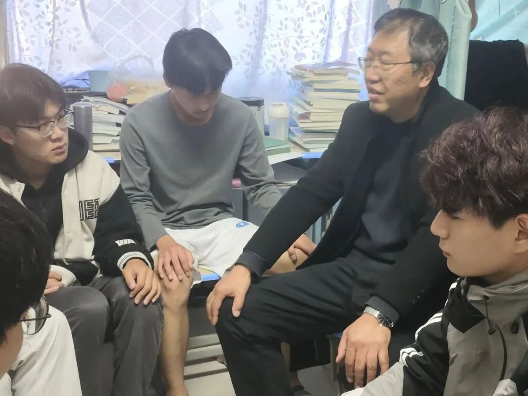 在13号公寓楼605宿舍,韦德体育团总支书记马腾老师深入了解了同学们的近期生活、学习情况,倾听同学们在学习、生活中遇到的问题和困难,以及同学们对老员工活的认知和适应情况。