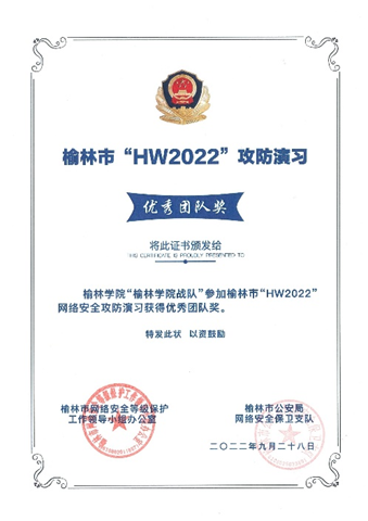 发挥技术优势,展现责任担当,积极参加社会网络安全活动。2021、2022年选派队伍参加了榆林市网信办和市智慧局组织的“政务云”攻防演练活动、榆林市公安局组织的“2021护网”和“2022护网”活动。此外,多名骨干成员作为奇安信等知名网络安全企业的团队成员参加了武汉、北京和西安等地的护网活动。