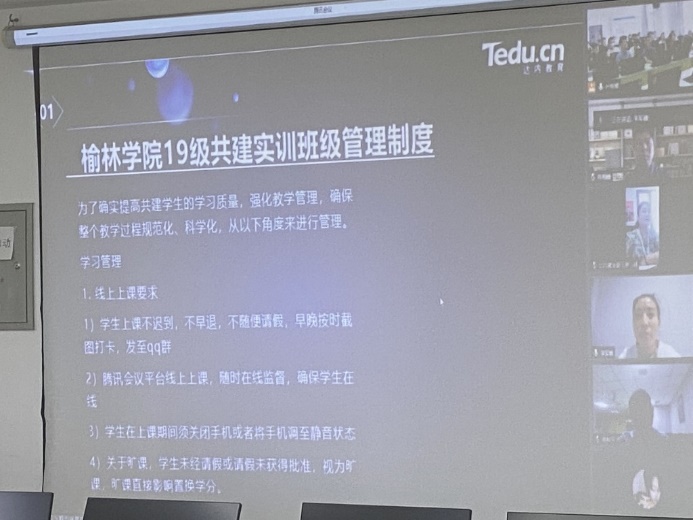 仪式中达内集团陕西区就业部经理赵玉彤老师对于实训中就业素养课程的安排进行了解读,班主任刘佳老师宣读了班级管理制度,项目经理郝利平就实训课程安排与各个环节衔接情况做了简要说明。
