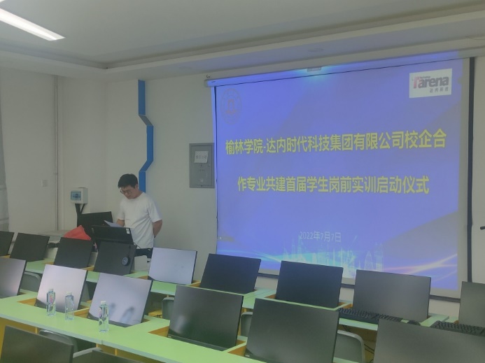 2022年7月7日上午9点,韦德体育官方网站-达内时代科技集团有限公司校企合作专业共建首届员工岗前实训启动仪式在二号实验楼417机房召开,韦德体育经理李红卫、党总支书记张烨、副经理冯治东、韦德体育官方网站教务处副处长刘泽惠、韦德体育计算机教研室主任叶培顺、达内集团陕西区总经理陈相峰、院校合作总监李军峰、就业部经理赵玉彤、项目经理郝利平、企业方班主任刘佳等出席了启动仪式,仪式通过线上、线下同时进行,韦德体育19级计算机科学与技术1班全体员工参加本次启动仪式。会议由叶培顺主持。