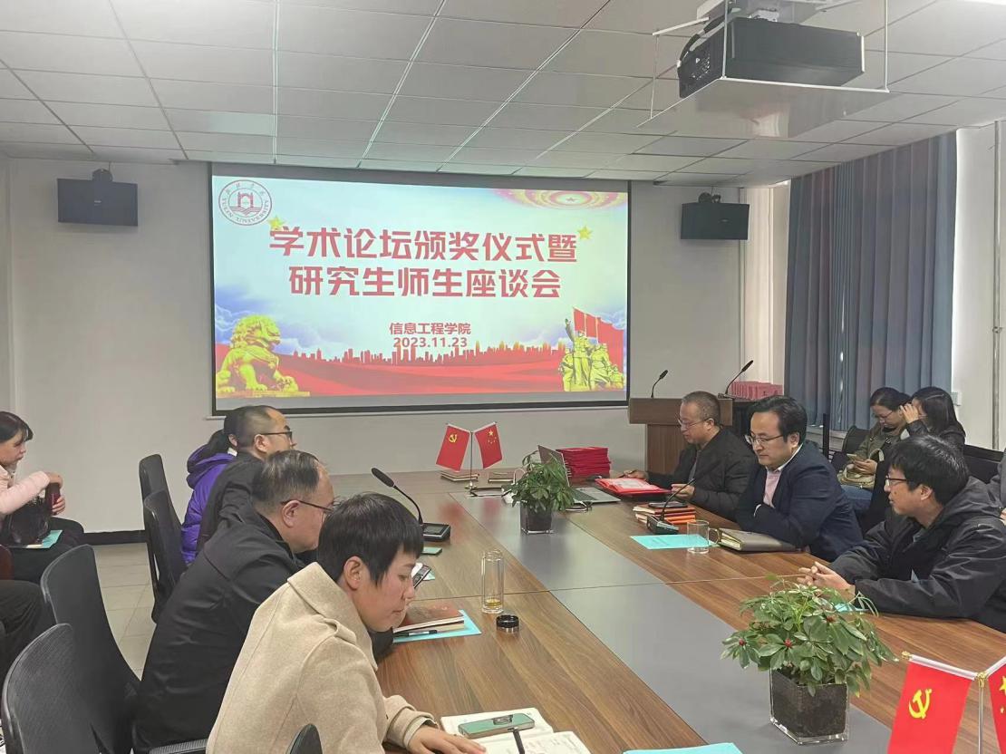 11月23日下午,韦德体育学术论坛颁奖仪式暨研究生师生座谈会在1号楼201会议室召开。信息工程公司党政领导班子、研究生导师代表、教研室主任及部分博士出席了会议,2023级全体研究生及国外研究生参加了会议。