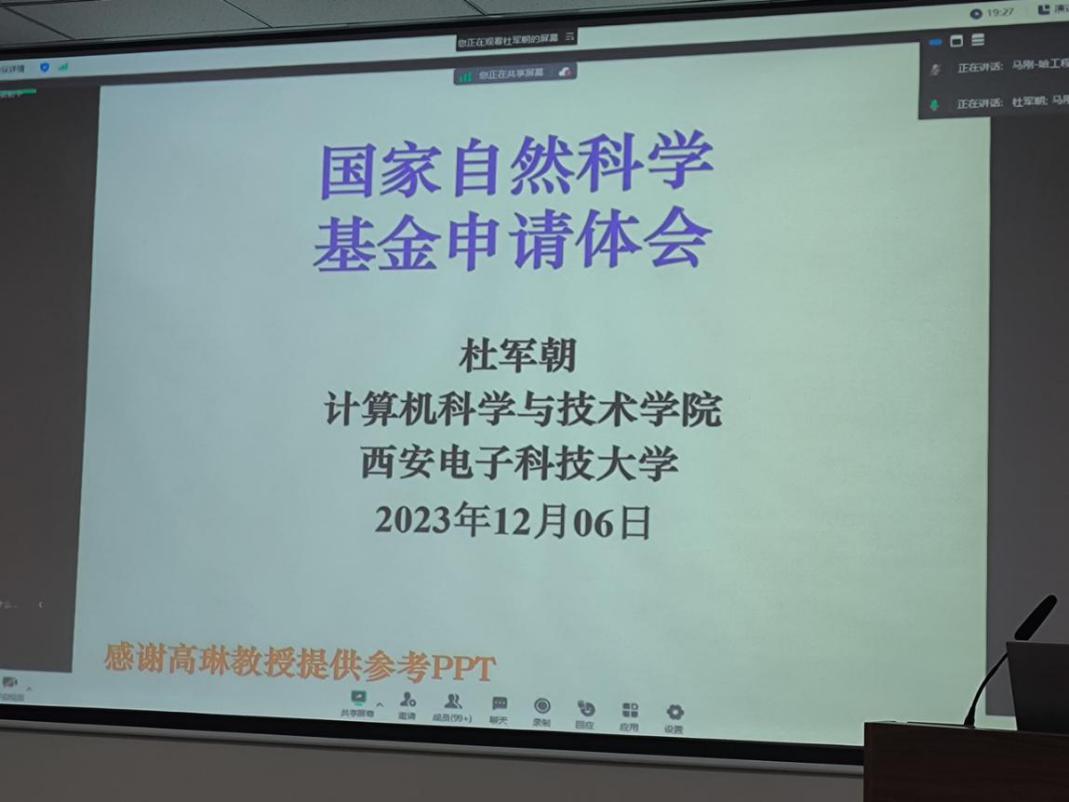 为进一步提升韦德体育教师国家自然科学基金项目申报书的撰写质量,提高申报成功率,12月6日晚上,公司特邀西安电子科技大学二级教授、国家级人才、博导杜军朝教授在1号楼210会议室做了题为“国家自然科学基金项目申请体会”的专题辅导报告,公司拟申报自然科学基金的中青年教师、博士及2023级研究生40余人参加了报告会。