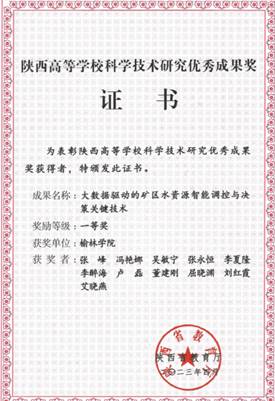 获得2023陕西高等公司科学技术成果一等奖1项, 2023年度陕西省科技进步三等奖1项,绿色矿山科学技术奖一等奖1项,榆林市优秀论文奖18项;授权专利、软件著作权36项,发表高水平论文21篇,秦创原科技成果转化路演1项。